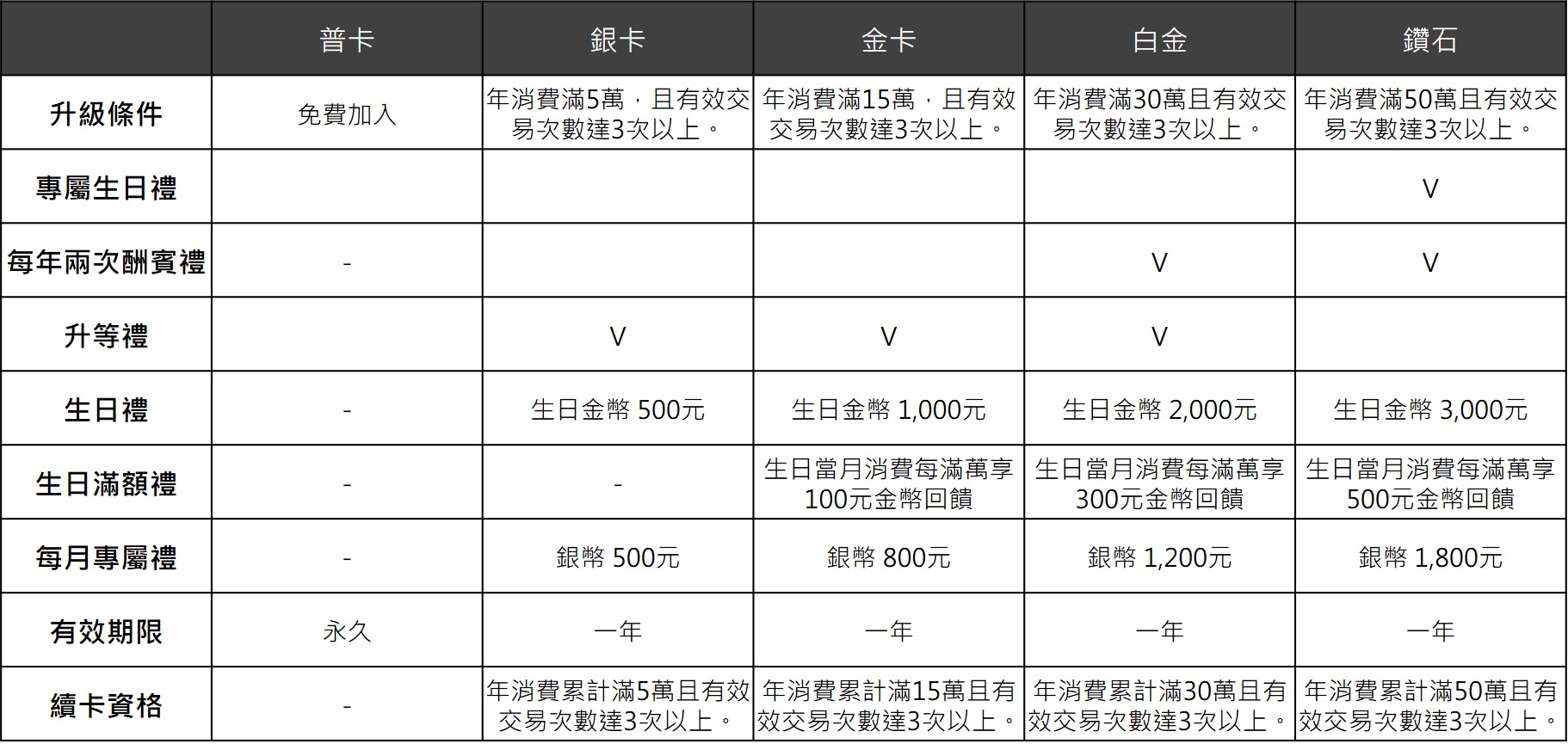 - 達成會員升級時的訂單金額,並不會計算於續卡的指定金額內。續卡的指定金額會在升級為該等會員後,從0計算。